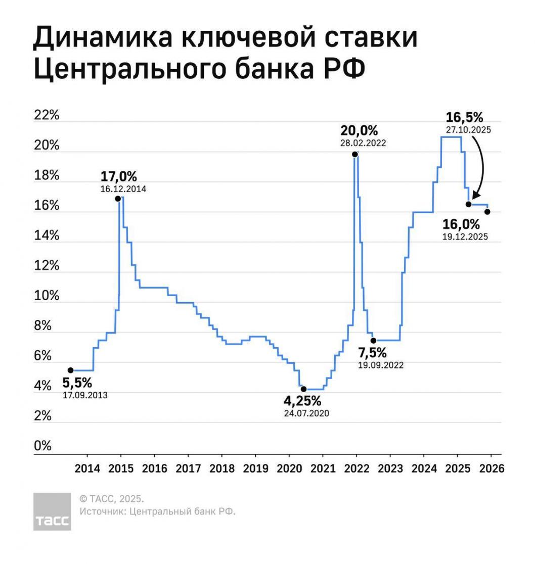 Ключевая ставка ЦБ снизилась до 16,00% годовых. Решение принял совет директоров Банка России сегодня, 19 декабря, сообщили в пресс-службе ЦБ. Новость во время подведения «Итогов года» прокомментировал президент России Владимир Путин.