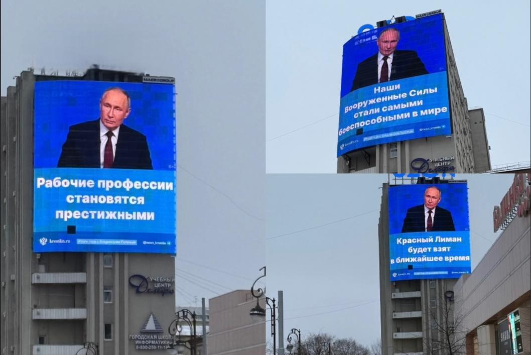 На экране горожане уже видели высказывания про уровень безработицы, СВО и другие цитаты, сказанные в этот день.
