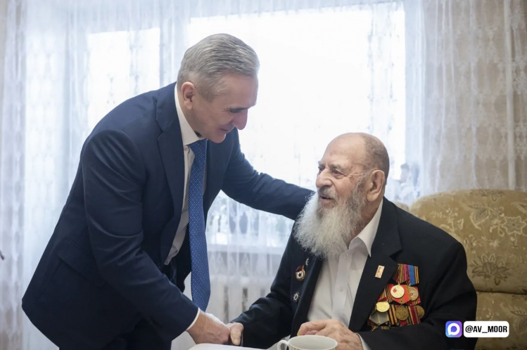 Губернатор Тюменской области поздравил с наступающим фронтовика Михаила Костюрина