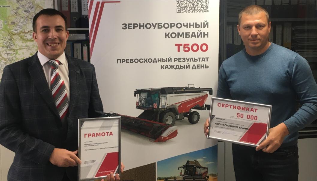 В номинации «Лучший результат на тракторе Ростсельмаш 2400» награду получил Рязанов Геннадий Александрович, ООО «Агрофирма «КРиММ»: