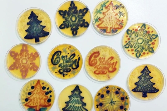 Зауральские микробиологи сделали новогоднюю открытку с помощью бактерий