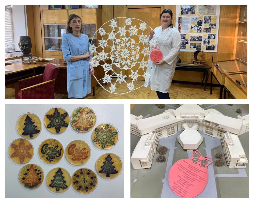 К новогоднему празднику мастерицы коллектива создали гигантскую снежинку в технике вязания крючком. Она состоит из множества маленьких ажурных накрахмаленных снежинок. Творение ручной работы станет ярким дополнением новогоднего интерьера Центра Илизарова. На этом таланты коллектива лаборатории микробиологии не заканчиваются, сотрудницы написали зимний стих, который от души дарят всем коллегам.