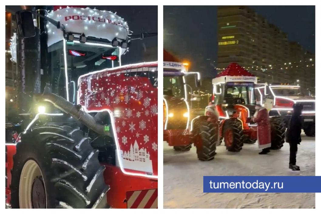 Сегодня, 26 декабря, по Тюмени проехал новогодний тракторный кортеж. Водители сельскохозяйственной техники сменили свою обычную экипировку на костюмы Деда Мороза и Снегурочки, чтобы подарить тюменцам настоящее зимнее чудо и праздничное настроение.