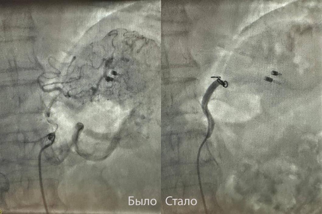 Заведующий хирургическим отделением Семен Франц принял решение использовать альтернативный, менее травматичный метод. Совместно с хирургом Андреем Прохорихиным они провели эндоваскулярную операцию: через маленький прокол в бедре врачи нашли кровоточащий сосуд и перекрыли в нем кровоток с помощью специальной спирали и медицинского клея.