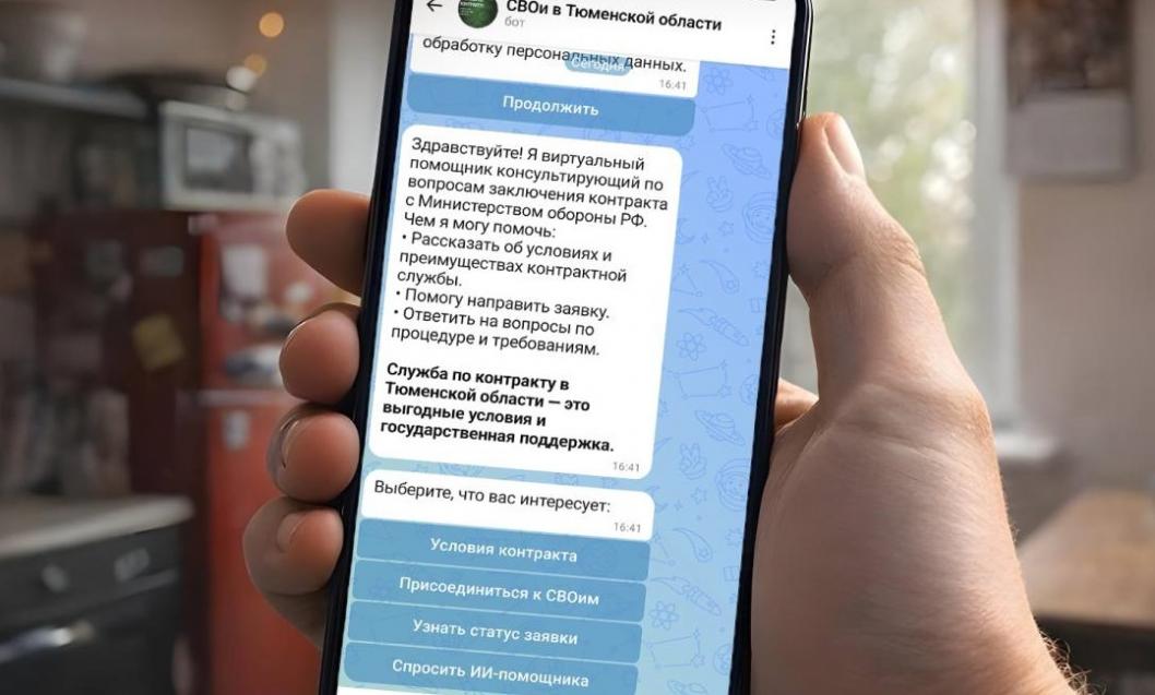 Ответы на вопросы о службе по контракту в Тюменской области можно получить в чат-боте, который запущен в мессенджере MAX. Цифровой помощник работает по ссылке @contract_tyumen_bot.
