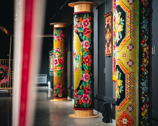 Тюменское музейно-просветительское объединение продолжает работу над проектом генеративного ковра. В основе процесса лежит нейросеть Kandinsky, которая анализирует впечатления посетителей выставки «Сибирский махровый ковёр».