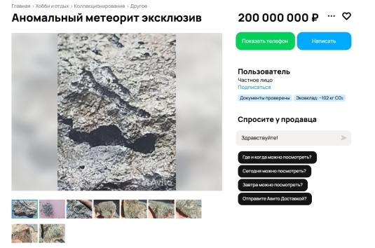 В Тюмени продают метеорит за 200 млн, бирку от хлеба и коллекцию банок