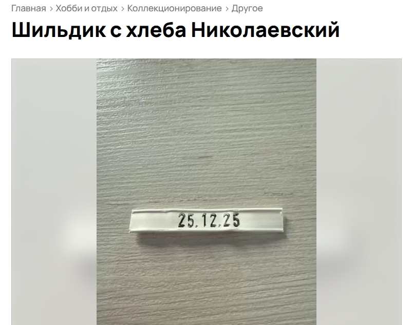А иногда история занимает всего одну строчку. Например, вот: «Шильдик с хлеба «Николаевский». Красивая дата». И стоит всего ничего – ровно 1 000 рублей.