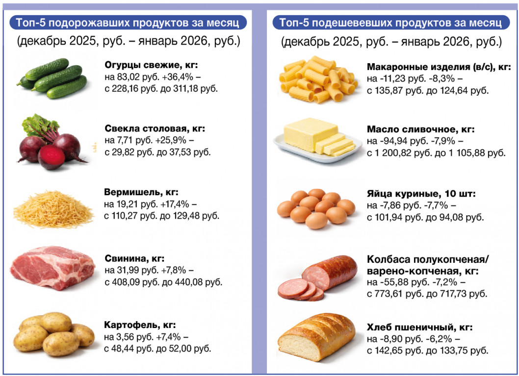 «Тюменская область сегодня» сравнила средние цены в регионе за период с середины декабря 2025 года по середину января 2026-го.
