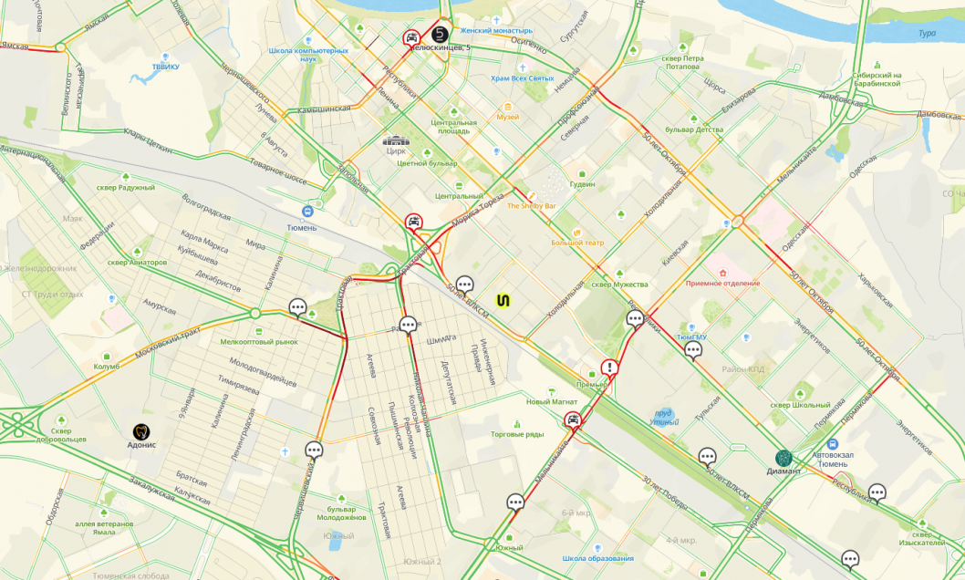 В настоящее время заторы образованы на улицах Трактовой, Зои Космодемьянской, Николая Чаплина, Мориса Тореза и Мельникайте. Также трудности с проездом возникли на улицах Федюнинского, Челюскинцев и Ямской. Ситуацию осложняют и несколько ДТП в этих районах. В районе указанных улиц произошло пять аварий. В целом заторы сейчас достигают пяти баллов.