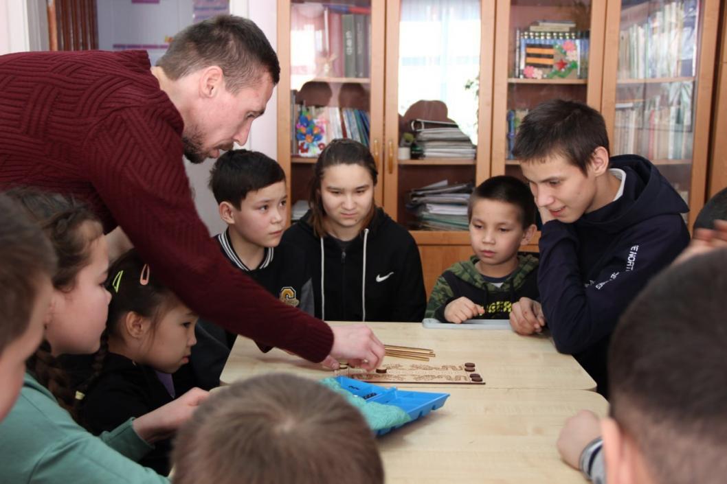В гости к школьникам приехали муниципальный координатор проекта «Навигаторы детства» Елена Квасова и обозреватель газеты «Светлый путь» Сергей Квасов. В рамках Года единства народов России они привезли в отдаленное село уникальную домашнюю коллекцию этнических настольных игр, чтобы познакомить ребят с культурой и традициями разных народов через универсальный язык игры.
