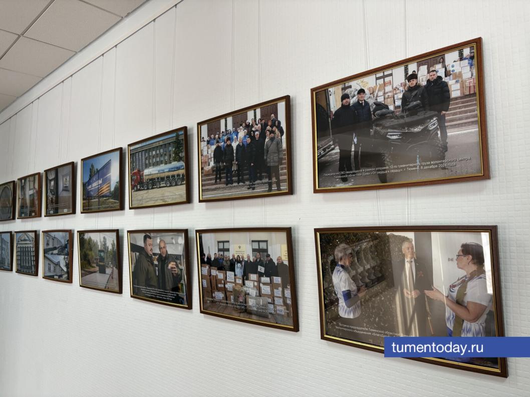 В Тюменской областной Думе состоялось открытие фотовыставки «Наш вклад в Победу». Экспозиция посвящена работе волонтерского центра, сотрудников аппарата и депутатов, которые на протяжении нескольких лет оказывают адресную помощь бойцам и жителям прифронтовых территорий.