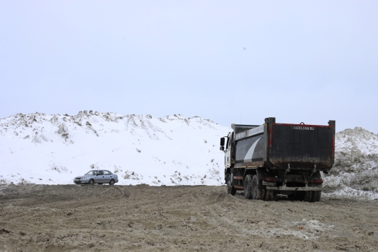 Снежная зима в Тюмени бьет рекорды. Полигон в районе проезда Воронинские горки работает в круглосуточном режиме, ежедневно принимая около тысячи рейсов самосвалов. Снежные кучи здесь утрамбовывают бульдозеры, а высота сформированной площадки уже достигла почти 30 метров.