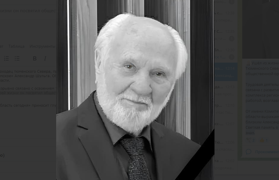 На 88 году жизни скончался ветеран-первопроходец тюменского Севера, председатель Тюменской региональной общественной организации землячества «Надымское» Александр Шульга. Об этом 13 марта сообщает Комитет по делам национальностей Тюменской области.