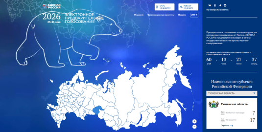 Для тех, кто впервые участвует в предварительном голосовании и хочет попробовать свои силы в качестве будущего кандидата в областную Думу, реализуется проект «Политстарт». Выдвижение кандидатов для участия в предварительном голосовании завершится 30 апреля. Его победители будут представлять «Единую Россию» в качестве кандидатов в депутаты Госдумы РФ и Тюменской областной Думы восьмого созыва.