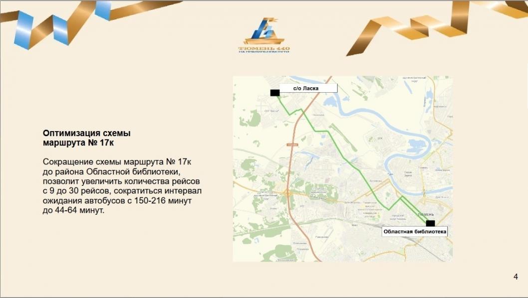 Департамент дорожной инфраструктуры и транспорта администрации города Тюмени планирует оптимизировать работу маршрута № 17к. Автобусы, следующие от садоводческих товариществ в районе Воронинских горок, теперь будут доезжать до центральной части города – до остановки у областной библиотеки.