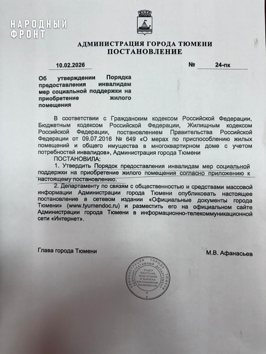 Документ предоставлен ОНФ по Тюменской области