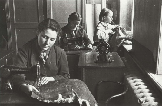 Школьницы шьют телогрейки для фронта, 1943 год | Фото с сайта проекта «История России в фотографиях», автор Сергей Васин
