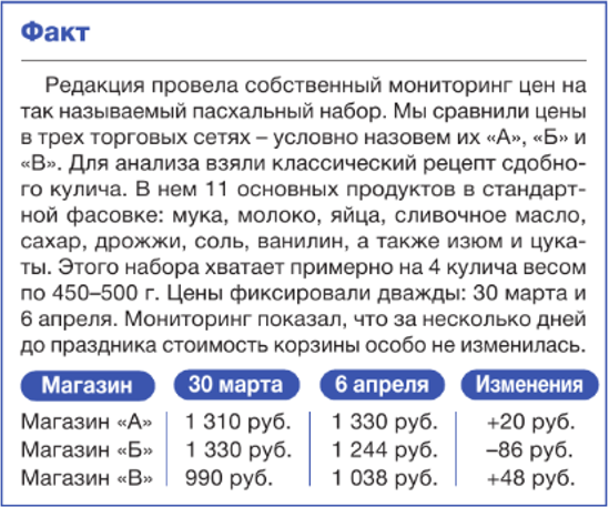Выводы делайте сами. Мы, конечно, не призываем отказываться от покупных вариантов. У всех разный ритм жизни, условия, обстоятельства. Но цифры и состав говорят сами за себя. Домашний кулич обходится в 3–6 раз дешевле, чем в магазине, а в сравнении с премиум-сегментом – в 7–8 раз. Кроме того, когда вы печете сами, можете быть уверены в составе: знаете, что в тесте настоящее масло, а не маргарин, свежие яйца, а не меланж.