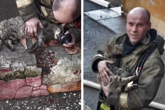 Руслан Белоус, сотрудник 14-й пожарно-спасательной части 32-го ПСО областного главка МЧС России, вывел с верхних задымленных этажей женщину, а после вынес на свежий воздух трех кошек. Двух из них пришлось откачивать. Видео со спасением одного котика сегодня увидели пользователи соцсетей, восхитившись действиями тюменского спасателя.