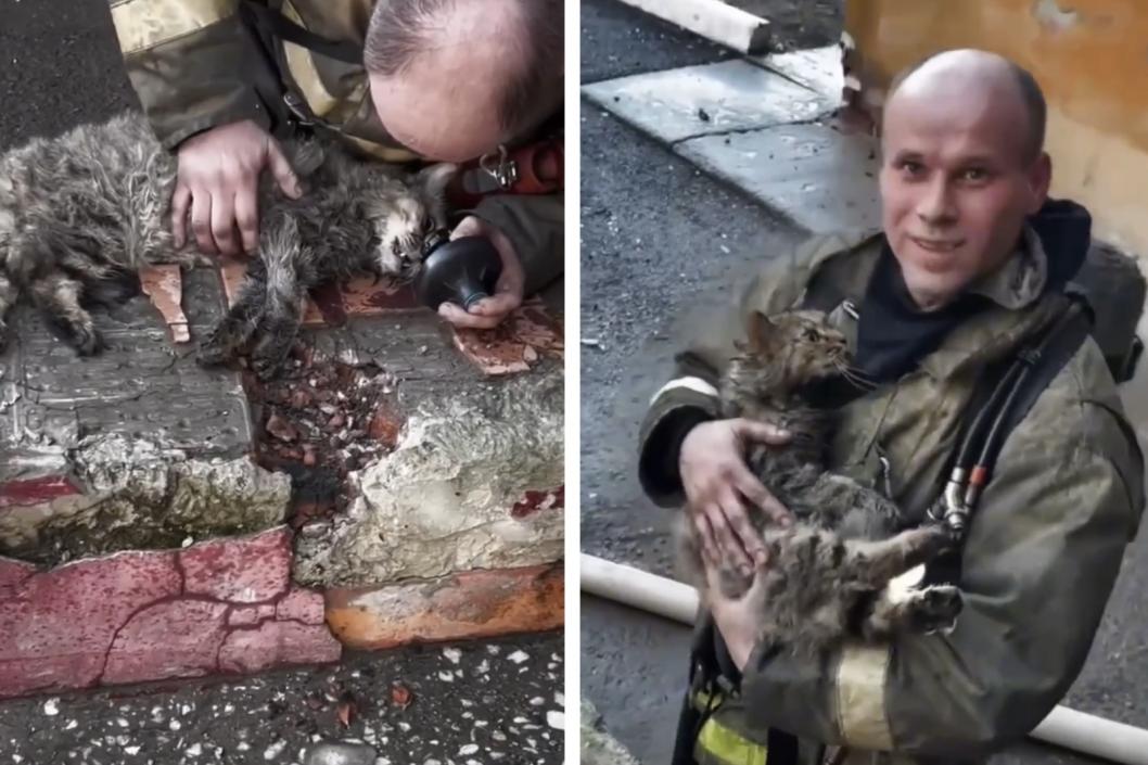 Тюменские пожарные откачали кота, спасенного из горящего дома – видео