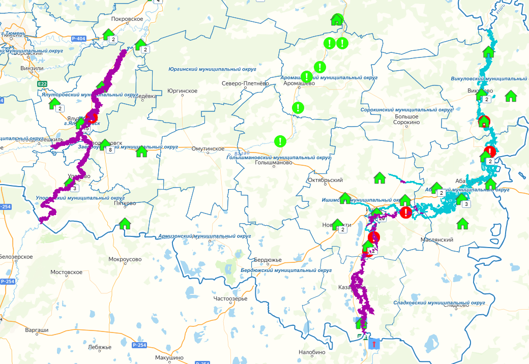 На утро 21 апреля самый заметный подъем воды зафиксирован в Ишиме. Уровень реки поднялся на 23 см и достиг 442 см. Также наблюдается рост и на других гидропостах: