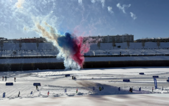 Как в Тюмени отмечают День защитника Отечества: над Турой – парашютный десант, на льду – дрифт