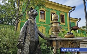 В Тюмени появилась новая скульптура соболя – он пьет чай на Дзержинского